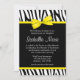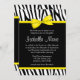 Un motif zèbre noir et blanc tendance avec un arc jaune graphique est présenté sur cette invitation Bat mitzvah amusante. Les dessins sont des illustrations/graphiques imprimés - PAS RÉELLEMENT RIBBON.