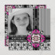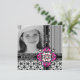 Belle invitation à la photo cadre pour toutes les occasions. Vibrant rose fushia et vert (arrière - plan vert personnalisable). Motif damassé original et motif ornemental de Divine Damask.