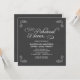 Invitations rustiques de dîner de répétition de pré-mariage de panneau de craie. Invitations typographiques de mariage de tableau -- Les rouleaux tourbillonnants et bouclés créent un cadre rustique simple sur le tableau noir de gris d'ardoise. Ajoutez les noms et information de épouser dans ce modèle facile à utiliser. Le style carré d'invitation de panneau de craie est parfait pour des mariages modernes à la mode avec un contact d'amusement de charme sophistiqué pour les jeunes mariés traditionnels. Prix abordables des jeunes mariées sur un budget. NOTE : Cette conception de produit est installée pour les cartes carrées seulement, qui exige l'affranchissement supplémentaire.
