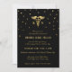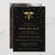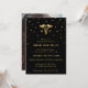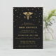 Invitations à la remise des diplômes de l'école de sciences infirmières en or et en noir. Parfait pour célébrer une nouvelle infirmière ! Symbole de confetti et de caducée sophistiqué avec "RN" dans un effet imprimé or chatoyant.