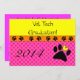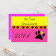 Vet Tech Graduation Invitations, pois roses et oranges avec emblème de pattes de chien. Entièrement personnalisable à l'avant et à l'arrière. Parfait pour obtenir un diplôme de technicien vétérinaire.