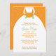 Robe de mariée moite sur arrière - plan damassé orange. Parfait pour les douches nuptiales à thème automne. Des enveloppes assorties, des cartes de notes et des autocollants sont disponibles.