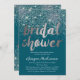 Invitations de douche nuptiale en argent et Parties scintillant Turquoise. Glamourous, Parties scintillant avec turquoise foncé avec d'éblouissants accents faux argent, cette fab invitation à la douche nuptiale est parfaite pour toutes ces mariées de parties scintillant et de glamour là-bas. Cette invitation à la douche nuptiale coordonne avec notre Mariage de Parties scintillant et notre collection de Fêtes des mariées à MetroEvents sur Zazzle. Conçu par Metro-Event.com