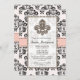 Jolie fleur de lis nuptiale invitation à la douche nuptiale avec un design de coeurs et de contrastes pointes rose et noir ruban et une bordure légèrement damasée en noir et blanc. Artisanat et design © Chrissy H. Studios, LLC.Tous droits réservés.