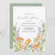 Célébrez dans le style avec ces invitations à la douche nuptiale fleur sauvage, avec des fleurs d'aquarelle dans les tons doux d'orange et lavande, accentué par des feuilles botaniques verts sauge. L'élégant script de calligraphie ajoute un charme vintage, les rendant parfaits pour une douche nuptiale chic boho, un brunch floral ou une fête de printemps. Idéal pour un dîner de douches nuptiales ou un rassemblement inspiré du jardin, ces invitations de douches nuptiales avec des fleurs capturent la beauté de la nature avec une sensation amoureuse et sans effort. Disponible en téléchargement numérique pour les mariages durables. Achetez d'autres invitations pour les douches nuptiales printanières et coordonnez les modèles à l'adresse www.zazzle.com/dotellabelle. OEuvre originale en aquarelle de Victoria Grigaliunas de Do Tell A Belle.