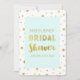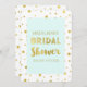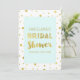 Invitations de douche nuptiale personnalisées avec effet d'or confetti motif et pastel clair aqua bleu turquoise avec texte moderne lettré à la main. Personnalisable avec votre texte.