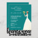 Une élégante invitation à la douche nuptiale pour la mariée moderne avec une mariée avec des fleurs sur un arrière - plan coloré. Disponible en couleurs alternatives. Veuillez nous contacter si vous cherchez une autre combinaison de couleurs. Des cartes de remerciement, des faveurs et des frais d'affranchissement sont également disponibles.