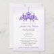 Invitations de douche nuptiale personnalisées avec un lustre violet sur un arrière - plan violet et blanc. Customisez complètement cette invitation de douche nuptiale en cliquant sur "customisez-la" pour plus de choix de police et de couleurs de police qui peuvent être localisés dans la liste déroulante "modifier" pour la sélection de couleur de police.