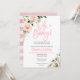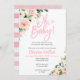 Invitations super mignonnes de douche bébé pour une petite fille. Une douce petite fille est en route. Fêtons avec une journée spéciale ! Les mots "Oh, Baby !" sont écrits dans une police de calligraphie rose vif. Ces invitations présentent des fleurs roses rousses et des accents dorés.