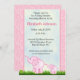 Baby shower d'éléphant rose Invitation avec la mère et l'éléphant bébé. Arrière - plan de nature avec ciel et herbe. Utilisez le modèle fourni pour customiser avec vos informations.délicieux doodles.