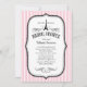 Invitations de douches nuptiales parisiennes dans un décor rose, noir et blanc avec la tour de eiffel. Customisez le libellé avec vos informations sur la douche de la mariée. Affichez un aperçu exact de ce à quoi ressemblera le invitation fini à l'écran avant de commander.
