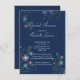 Commencez votre élégante douche nuptiale par notre jolie invitation wedding shower. Notre invitation nuptiale moderne présente de jolies fleurs bleues vertes, roses et blanches avec des feuilles verts sur un arrière - plan bleu marine foncé élégant. Visitez notre boutique pour voir ce invitation dans une large sélection de couleurs wedding showers populaires et branchées.