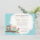 Petit hibou en couple sur invitation à la branche avec arrière - plan de bois, en bleu et or mat.