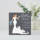 L'élégante invitation à la wedding shower de mariée moderne et moderne présente une mariée chic et moderne en train de déguster un verre de vin tout en tenant un magnifique bouquet de fleurs de mariage bleu foncé sur un papier populaire arrière - plan de lin noir avec un texte blanc remarquable. Notre invitation moderne à la douche de mariée est parfaite pour une fête populaire de la douche de la mariée. Visitez notre boutique pour voir cette belle invitation à la douche nuptiale dans une large sélection de couleurs de bouquet floral et différentes variations de mariées.