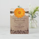 Je recommande fortement le type de papier LINEN. | Voici une invitation unique de douches pour une mariée de campagne. Elles présentent un design imprimé rustique avec de la dentelle imprimée et un fil à linge avec une marguerite orange en haut et un imprimé florissant en bas. Elles sont idéales pour les épouses qui auront un mariage de style champêtre ou qui utiliseront des marguerites oranges ou des fleurs orangées dans leur mariage.