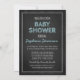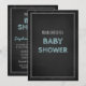 Invitations personnalisées de douches pour bébés dans un motif élégant et amusant de style tableau noir avec texte bleu pastel clair. Personnalisable avec votre texte, contactez-nous pour demander un changement de couleur. Parfait pour un bébé.