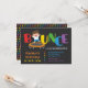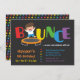 Rebondissez dessus plus d'et célébrez avec le garçon d'anniversaire ! Cette invitation a le rebond de mot dans la grande taille de la police avec chaque lettre dans une couleur différente ! La lettre o est créativement remplacée par un trempoline rond et un garçon dans la pièce en t blanche et les shorts bleus rebondit heureusement là-dessus. Sur l'inverse la page est un motif créé utilisant des points et des couleurs de l'arc-en-ciel. Pour n'importe qui accueillant la fête d'anniversaire aux parcs d'intérieur de trempoline ou à leur propre jardin. Personnalisez avec vos détails de partie en texte coloré.