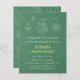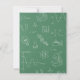Cette invitation de fête d'anniversaire de la science est conçue de ressembler à un tableau vert avec des griffonnages de diverses icônes de la science dans le blanc. Sur l'avant, il y a un flacon de laboratoire, la structure de liaison chimique, formules d'un microscope, de l'énergie e=mc2 et un atome. Ajoutez vos détails de partie en texte décontracté de police. Sur l'inverse est un motif avec les éléments supplémentaires de la science comme une ampoule, loi de mouvement, icône d'ADN, élément périodique de l'oxygène, aimant, la constitution chimique, réfraction de lumière par le prisme en verre. Conception neutre de genre qui est grande pour des garçons et des filles d'anniversaire.