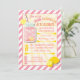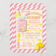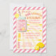 Invitations de fête d'anniversaire super mignonne et moderne Pink Lemonade avec grand pot de mason de limonade et de paille rose, et des citrons frais avec typographie amusante sur un arrière - plan sunburst. Illustration tirée à la main par McBooboo.