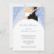 Invitations nuptiales de douche d'hiver, avec une illustration des jeunes mariés sur un arrière - plan bleu de flocon de neige. Obtenez l'affranchissement, les étiquettes de faveur, et les étiquettes postales assortis. Contactez-nous pour que les couleurs faites sur commande assortissent vos couleurs de mariage - PMCustomWeddings@hotmail.com