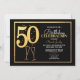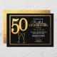 Classé et élégant avec juste une touche de style rétro invitations à la fête du 50e anniversaire avec une bordure noire, fausse couche de feuille d'or et des lunettes de champagne "clinking" sous le numéro 50.