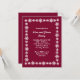 Ces invitations simples et élégantes à la fête du vin et du fromage de Noël présentent des flocons de neige blancs sur un arrière - plan bordeaux. Idéal pour des soirées de dégustation de vin de vacances ! Graphiques de Sanqunetti Design @ MyGrafico.com.