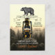 Ours boisés rustiques et lanterne de camping contre un arrière - plan de terres forestières. Une invitation à une fête de rassemblement de feu de camp pour partager des histoires, du vin et des s'mortes ! Une idée de fête idéale pour les aventuriers de plein air. Faites une fête dans votre aire de pique-nique de cabine ou de camping. Customisez avec les détails de votre fête.