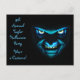 Costume éffrayant Halloween soirée invitation carte postale avec visage monstre bleu effrayant déplaisant.