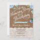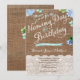 Effet Burlap et dentelle avec des détails de fleurs bleu aquarelle sur ces invitations de jour de Naming / Anniversaire pour la journée spéciale de votre petit garçon