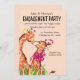 Invitations fiançailles avec girafes embrassantes debout dans l'herbe verte. Customisez avec les détails de la fête des couples heureux.