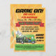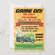 Super cool des invitations pour les fêtes d'anniversaire de camion de jeu pour cette personne qui aime le jeu vidéo. Fait dans un style poster dynamique avec un fond de solarium, véhicule de camion de jeu avec des graphismes impressionnants et beaucoup d'espace sur les deux côtés pour l'information de votre fête. Idéal pour tous les âges, anniversaires ou même événements d'entreprise. Illustration tirée à la main par McBooboo.