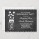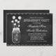 Invitations de fête de fiançailles en tableau noir moderne avec des pandelions en dessin et un bocal en maçon décoré de dentelle blanche. Je suggère un beau linge de texture ou de papier feutre pour ce design. N'hésitez pas à me contacter si vous avez des questions.