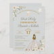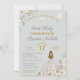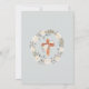 Des invitations florales étonnantes de la Première Sainte Communion avec des éléments d'inspiration rustique et vintage avec une fille en robe blanche traditionnelle, contre un arrière - plan gris doux. Au fond de l'invitation se trouve une croix de style boho avec fleurs d'aquarelle et verdure. Remplacez 'Première Communion sainte' par 'Christening' ou 'Baptême' selon ce qui convient à votre événement spécial.