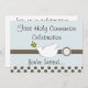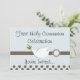Première Communion Invitations en bleu clair avec garniture en chocolat et colombe blanche avec un motif de branche d'olivier. Avant et arrière sont personnalisables.