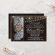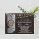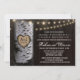 Dîner de répétition de l'arbre de bouleau sculpté Invitations - Dispose d'un arrière - plan en bois de grange avec des lampes à cordes. Faites graver le bouleau jusqu'aux initiales et à la date de votre choix. Voir la collection de correspondances complète dans cette conception ci-dessous.