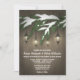 Invitations de mariage À feuillage persistant de neige rustique - design dispose d'un arrière - plan en bois rustique avec lanternes pendantes d'une branche d'arbre à feuillage persistant recouverte de neige. Voir les produits correspondants dans cette conception trouvés dans la collection sur cette page.