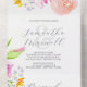 Ces invitations de mariage avec carte rsvp présentent des fleurs d'aquarelle botanique dans les tons rose, orange et pêche avec une touche de lavande. Un choix élégant pour un sceau et envoyer ou plier les invitations de mariage. Pour voir des idées de faire-part de mariage plus abordables, visitez le www.zazzle.com/dotellabelle Unique aquarelle art floral et design de Victoria Grigaliunas de Do Tell A Belle.