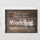 Invitations de Mariage campagnard en bois de grange rustique. L'arrière - plan est un design en bois foncé, et le mot "Mariage" est dans une police rustique en détresse. Le dos a le mot "LOVE" dans une police rustique en détresse similaire. Ajoutez simplement vos propres détails à ce modèle pour faire vos propres invitations de mariage rustique sur mesure. Le style de papier par défaut sur cette invitation est une finition "mate", mais vous pouvez également choisir d'autres types de papier.