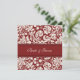 Cartes de faire-part de mariage en rouge élégant et blanc classique motif damassé floral classique. Customisez ces invitations avec vos coordonnées de mariage. Disponible en produits assortis pour tous vos besoins mariages.