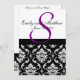 Invitation Mariage damassé avec Monogramme violet. Conception de la disposition par Elke Clarke © 2009. Graphiques sous licence pour use.com et WhiteWhimsicalWeddings.blogspot.com. Customisez avec vos noms monographiques et couleurs mariages. Ajoutez toutes vos informations mariages au verso de la carte en utilisant les invites de menu faciles à utiliser de Zazzle.
