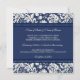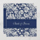 Cartes de faire-part de mariage en bleu marine élégant et blanc classique motif damassé floral classique. Customisez ces invitations avec vos coordonnées de mariage. Disponible en produits assortis pour tous vos besoins mariages.
