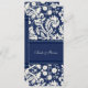 Cartes de faire-part de mariage en bleu marine élégant et blanc classique motif damassé floral classique. Customisez ces invitations avec vos coordonnées de mariage. Disponible en produits assortis pour tous vos besoins mariages.