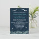Vagues marines et mouettes Invitations de mariage de la marine — Les invitations présentent un arrière - plan bleu marine avec des mouettes et des vagues au fond. Chaque invitation est accompagnée d'une enveloppe blanche. Vous pouvez mettre à niveau le stock de la carte à plusieurs choix sous les informations de démonstration trouvées sur la droite.