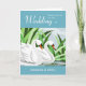 Paire de cygnes muets glissant sur l'eau parmi le feuillage vert, les couleurs et le texte peuvent être modifiés