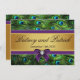 Invitations de mariage de plume de paon de pourpre et d'or -- comporte un arrière - plan imprimé par plume verte de paon. Une bande imprimée d'or a équilibré dans des grâces de pourpre l'avant et de retour. L'avant comporte également un arc imprimé assorti avec un embellissement de diamant. Ces invitations de mariage de paon sont placées à de carte de base de haute qualité ; cependant, vous pouvez changer le stock en toile, feutre (de relief), réutilisé, et plusieurs nuances métalliques si vous voudriez sous le numéro 2 (choisissent votre style, taille et type de papier) au-dessous de l'orange s'ajoutent au bouton de chariot. Une liste des coûts supplémentaires pour un de carte plus de fantaisie sont montrées également sous cette option. Chaque invitation vient avec une enveloppe blanche adaptée.