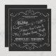 Invitations fantaisistes de mariage en tableau noir - Tourbillonnant, des nuances de bouillon et une belle typographie rétro de style vintage et moderne mélangé font un faire-part de mariage noir et blanc attrayant. Ajoutez vos noms et informations mariages dans ce modèle facile à utiliser. Chaque élément de conception peut être déplacé de sorte que vous modifiez le texte et la disposition d'un thème mariage formel ou semi-formel. Parfait pour les mariages modernes branchés avec une touche sophistiquée de charme rustique classique pour les mariés et mariés traditionnels.Important : Affiché sur les cartes d'invitation carrés - autres tailles et styles disponibles en magasin. Veuillez nous contacter pour obtenir de l'aide sur la personnalisation si vous avez besoin d'espace supplémentaire pour vos détails mariages.