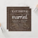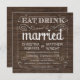 Mangez, buvez, et soyez mariés — invitations à des mariages campagnards rustiques de style Vintage — parchemins Tourbillonnant, bouclés et typographie à l'ancienne sur un arrière - plan de bois d'écorce brun. Ajoutez vos noms et informations mariages dans ce modèle facile à utiliser. Élégant mais amusant et fantaisiste, l'écriture de script de style tableau de bord peut être modifiée pour votre thème rétro rétro ou formel mariage. Le style Carré de l'invitation à la craie est parfait pour les mariages modernes branchés avec une touche amusante de charme sophistiqué et romantique pour les mariés et mariés traditionnels. Veuillez nous contacter pour obtenir de l'aide sur la personnalisation si vous avez besoin d'espace supplémentaire pour vos détails mariages. Les cartes d'invitation Carrés nécessitent un affranchissement supplémentaire — d'autres formats et styles de tableau de bord disponibles.