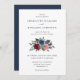 Faire-part de mariage floral bleu marine et bordeaux personnalisée avec un arrangement floral sur un arrière - plan blanc clair. Personnalisez facilement en ligne. Objets assortis disponibles pour compléter ces invitations de mariage bleu marine et bordeaux. Pour des demandes personnalisées, veuillez nous contacter via Zazzle conversation disponible sur la page produit.