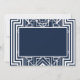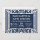 Ces invitations de mariage présentent un cadre géométrique complexe, des motifs géométriques, une palette de couleurs bleu marine et blanc, et d'autres détails stylistiques inspirés de l'Art Déco et des années folles. Vous pouvez customiser les champs de texte d'exemple à votre convenance.