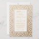 Cette belle Faire-part de mariage musulmane est la meilleure façon d'envoyer une invitation à votre journée spéciale. Conçu dans un style unique et élégant, cette invitation a un look traditionnel qui comprend un motif orné et une finition complexe. La carte est recouverte d'or chatoyant, ce qui ajoute une touche supplémentaire de luxe et de sophistication. Avec un charme intemporel et une esthétique inoubliable, cette invitation fera certainement une impression durable sur vos invités.